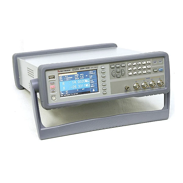 Цифровой RLC -метр .Тестовая частота 20 Гц...300 кГц. Базовая погрешность 0,05%. Скорость измерения 13 изм/сек.. Емкость (C) 0,00001пФ-10Ф, индуктивность (L) 0,00001мкГн-100кГн, сопротивление (Z, R, X, DCR) 0,00001Ом-100МОм, проводимость (Y, G, B) 0,00001мкСм-100См, добротности (Q) 0,00001-99999,9, тангенса угла потерь (D) 0,00001-10, фазовый угол, отклонение%. Посл. и параллельная схема замещения. Автомат. контроль уровня сигнала (V/I). Внутренний источник смещения (0V...±5V / 0mA...±50mA). Возможность подключения внешнего источника смещения (до 120 А). Свипирование по 10 точкам. Выбор внутр.импеданса (AC): 30 Ом, 50 Ом, 100 Ом. Функция проверки трансформаторов. Компаратор. Внутр. память -100 установок. Сохранение на USB. Интерфейсы RS232C, USB, LAN, HANDLER, GPIB (опция), DCI (опция). ЖК-дисплей 4,3 TFT. Габариты 280х88х370мм, масса 5 кг