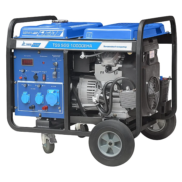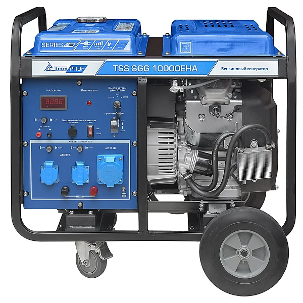 Бензиновый генератор TSS SGG 10000EHA - мощная 10-киловаттная электростанция, которая позволяет реализовать различные варианты подключения нагрузки и отличается высокой мобильностью за счет колесного комплекта. Благодаря совместимости с блоками автоматики установку можно использовать в качестве резервного источника электроэнергии, который будет автоматически обеспечивать питание дома или коммерческого объекта при отключении электричества в сети.