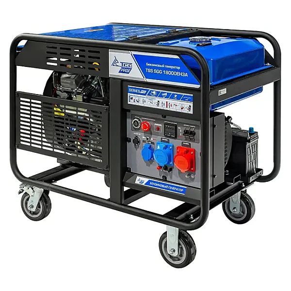 Бензиновый генератор TSS SGG 18000EH3A – производительная трехфазная электростанция с поддержкой автозапуска, используемая как источник электроэнергии с напряжением в 230 V, частотой в 50 Гц и номинальной мощностью 17 кВт. Отличается высокой эффективностью, надежной конструкций, длительной непрерывной эксплуатацией и возможностью работать в самых сложных климатических условиях.