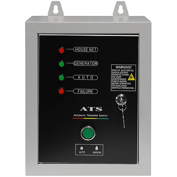 На передней панели установлены контрольные лампы, по которым с одного взгляда можно понять текущий статус сети, состояние генератора и увидеть наличие неисправностей.