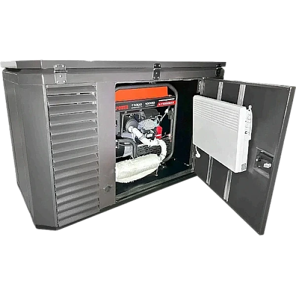 Бензиновый генератор A-iPower A11000EAX в супертихом зимнем кожухе 1700SS + блок автозапуска A-iPower 230В/400В 100А 8 ПИН номинальной мощностью 10 кВт представляет собой отличное решение как для электроснабжения рабочего объекта, например, стройплощадки, мастерской или предприятия торговой сферы, так и для резервного обеспечения энергией частного дома. Как и другие представители линейки X, этот агрегат совместим с высокоиндуктивными приборами и промышленным оборудованием, для чего может кратковременно выдавать пусковой ток до 20 кВА.