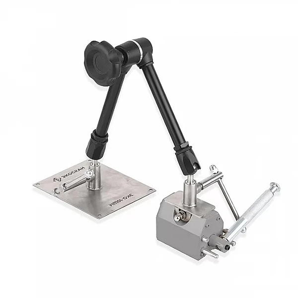 Крепление магнитное ЭКО-10ШМ в составе: — стальное основание — шарнирный штатив — выключаемый магнит |