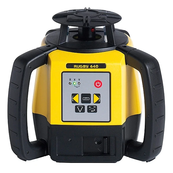 Кроме традиционного режима проекции горизонтальной лазерной плоскости, относительно которой выполняются измерения или разметка, ротационный нивелир Leica Rugby 640 также используется и для построения вертикали. Система самовыравнивания данного прибора способна работать в двух положениях, а на корпусе нивелира имеются два крепежных узла — внизу и сбоку, для крепления его на штативе.