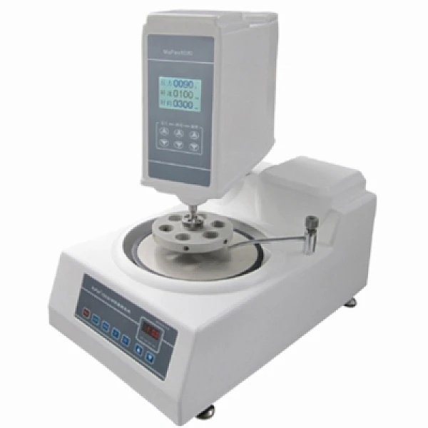 Автоматический шлифовально-полировальный станок MoPao 1000 с цифровым дисплеем отображения скорости вращения. Настройка скорости вращения рабочего диска: две постоянных скорости или бесступенчатое изменение скорости.