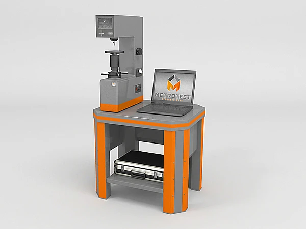 В стандартный комплект поставки твердомера входят два вида инденторов (стальной шариковый - диаметром 1,588 мм и алмазный конус с углом при вершине 120 гр.), предметные столы: плоские (большой и малый) и V-образный, стандартизированные меры твердости.